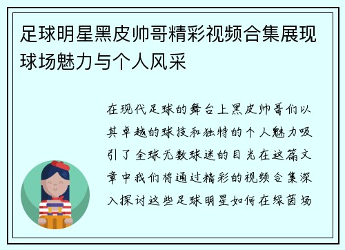 在英超联赛这个全球最受欢迎的足球联赛中,黑人足球明星们以其卓越的技艺和出色的表现吸引了众多球迷的关注。这些球员不仅在场上展现了非凡的技术和竞技状态,同时也通过自己的影响力在社会和文化层面产生了深远的影响。本文将从四个方面来分析英超联赛中备受瞩目的黑人足球明星,包括他们的历史成就、对年轻一代的激励作用、在反种族歧视运动中的积极参与以及他们对品牌和商业价值的贡献。通过这些方面,我们可以更全面地理解这些...